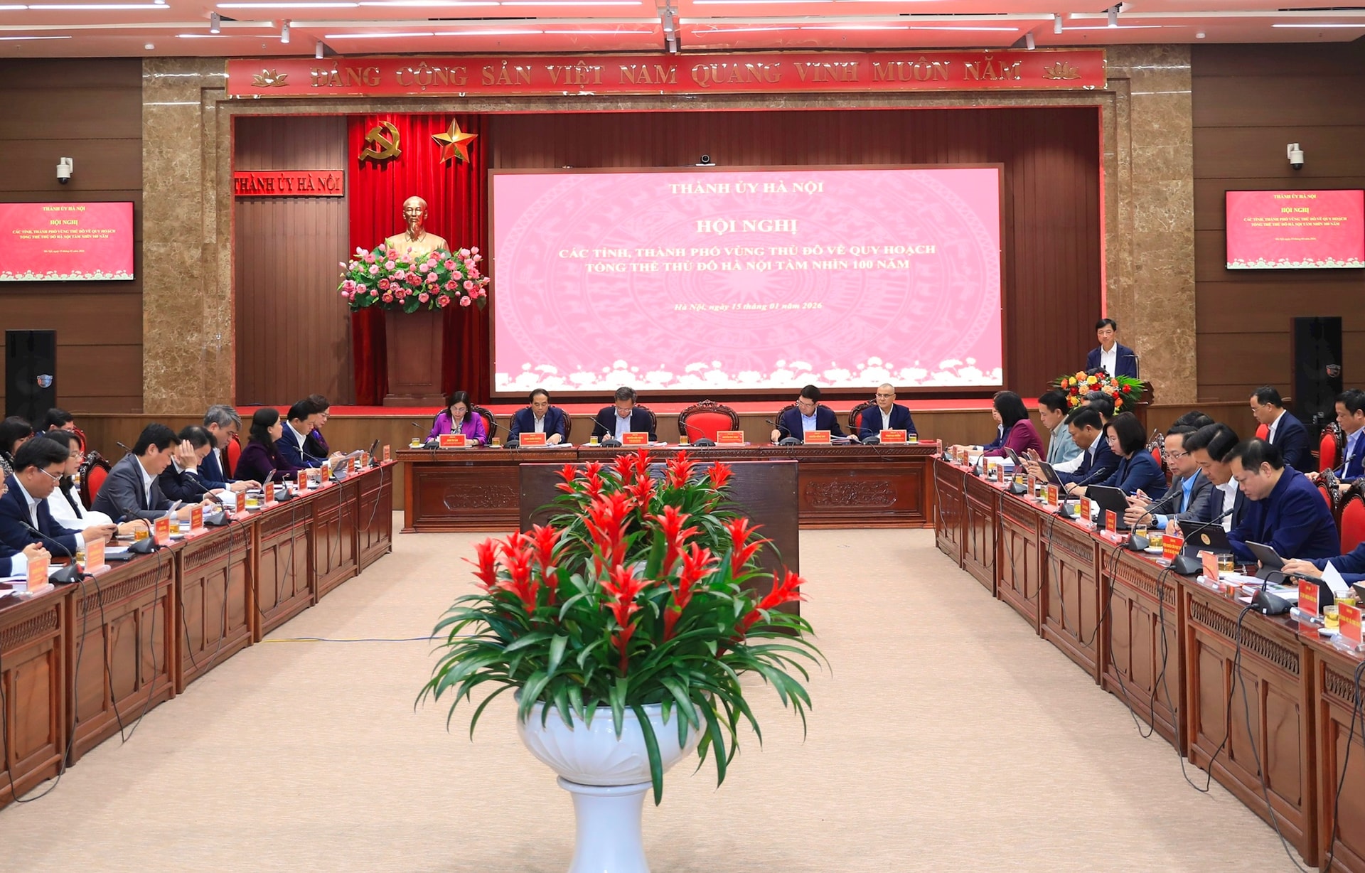 Chiều 15-1, Ủy viên Bộ Chính trị, Bí thư Thành ủy Hà Nội Nguyễn Duy Ngọc đã chủ trì Hội nghị Ban Thường vụ Thành ủy Hà Nội làm việc với các tỉnh, thành phố Vùng Thủ đô về Quy hoạch tổng thể Thủ đô Hà Nội tầm nhìn 100 năm.