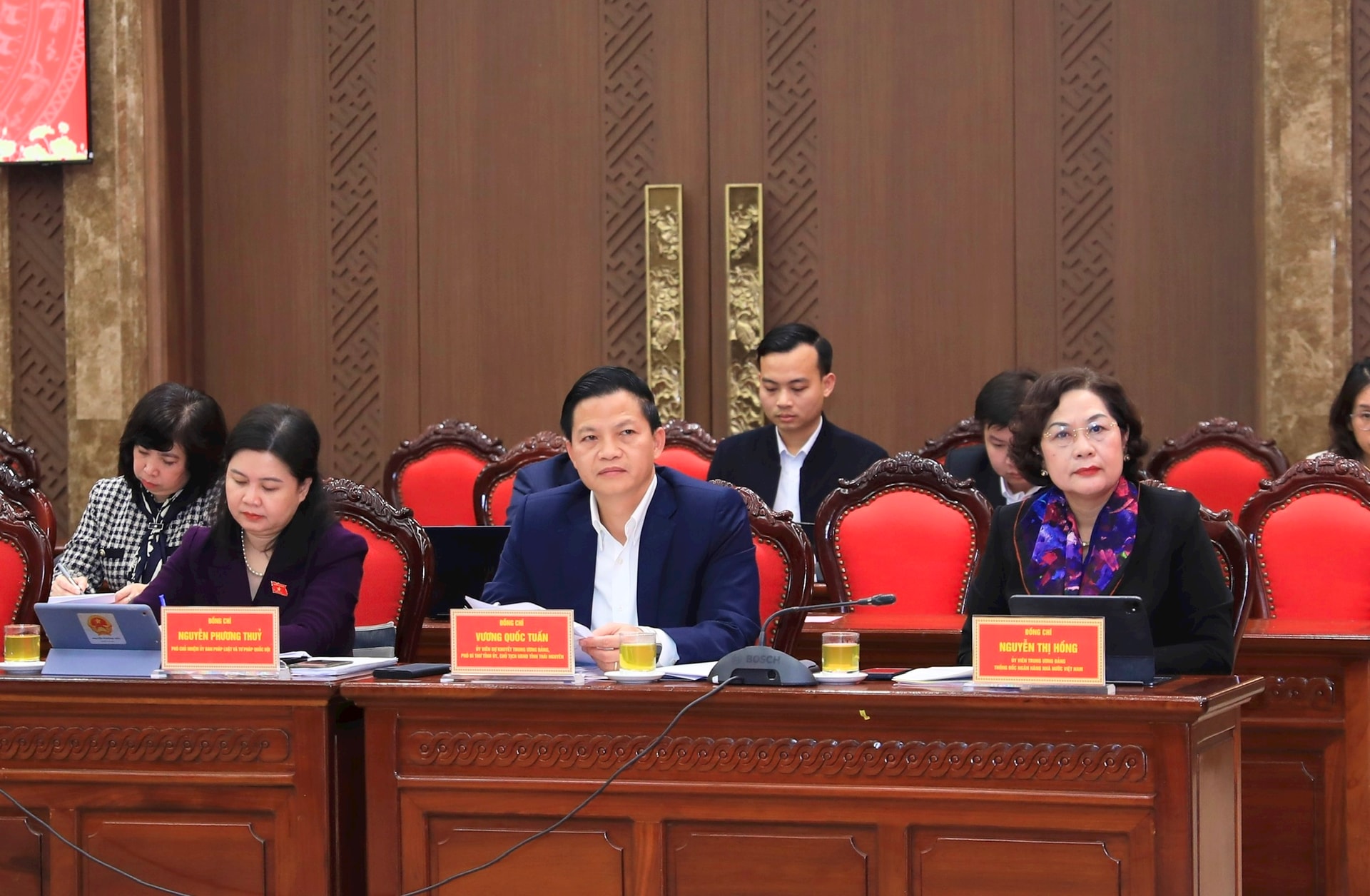 Dự hội nghị về phía Trung ương có các đồng chí: Ủy viên Trung ương Đảng, Thống đốc Ngân hàng Nhà nước Việt Nam Nguyễn Thị Hồng, Bộ trưởng Bộ Nông nghiệp và Môi trường Trần Đức Thắng; đại diện lãnh đạo các bộ, ngành Trung ương.