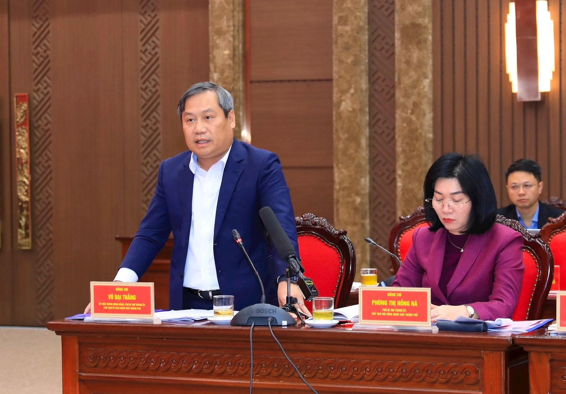Dự hội nghị về phía thành phố Hà Nội có các đồng chí: Ủy viên Trung ương Đảng, Phó Bí thư Thành ủy, Chủ tịch UBND thành phố Vũ Đại Thắng; Phó Bí thư Thành ủy, Chủ tịch HĐND thành phố Phùng Thị Hồng Hà; Phó Bí thư Thành ủy Nguyễn Trọng Đông; các đồng chí Ủy viên Ban Thường vụ Thành ủy, Thường trực HĐND, UBND thành phố...