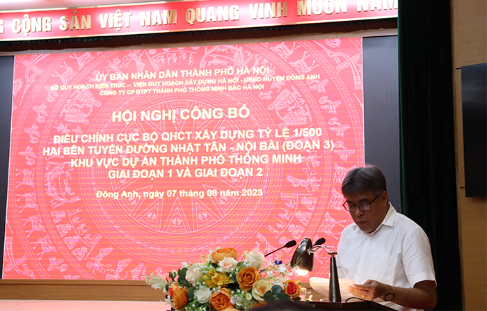 Ngày 7/8, Sở Quy hoạch - Kiến trúc phối hợp cùng Viện Quy hoạch xây dựng Hà Nội, UBND huyện Đông Anh, Công ty cổ phần Đầu tư phát triển Thành phố thông minh Bắc Hà Nội và các đơn vị liên quan tổ chức Hội nghị công bố công khai Điều chỉnh cục bộ Quy hoạch chi tiết tỷ lệ 1/500 hai bên tuyến đường Nhật Tân - Nội Bài (đoạn 3) khu vực dự án Thành phố thông minh, giai đoạn 1 và giai đoạn 2.